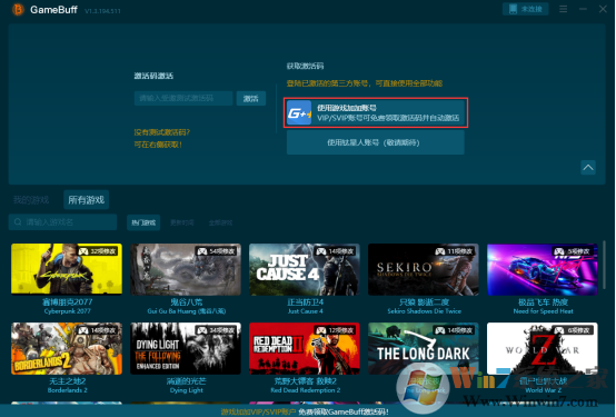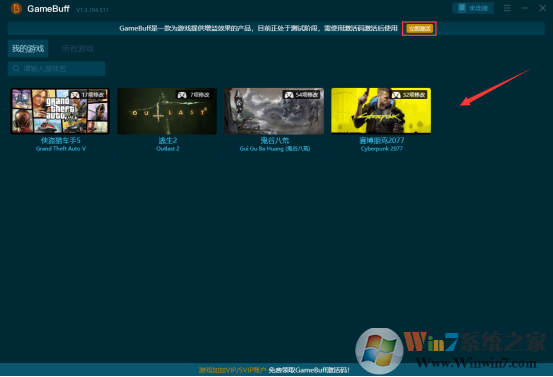 - 啟動(dòng)軟件GameBuff會(huì)自動(dòng)檢測(cè),電腦中的所有游戲,默認(rèn)的把游戲顯示到“我的游戲”之中,只需要打開(kāi)首頁(yè)點(diǎn)擊右上角的立即激活,輸入在游戲加加領(lǐng)取的激活碼即可免費(fèi)使用GameBuff修改器。