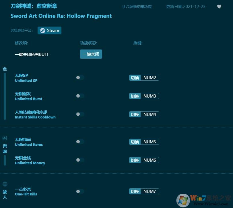 刀劍神域虛空斷章修改器功能說明