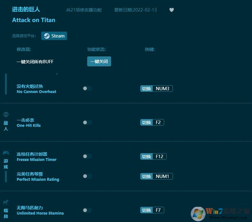 3、運行“進擊的巨人”游戲4、游戲運行后點擊“加個Buff"按鈕,當(dāng)然大家也可以進行單項修改