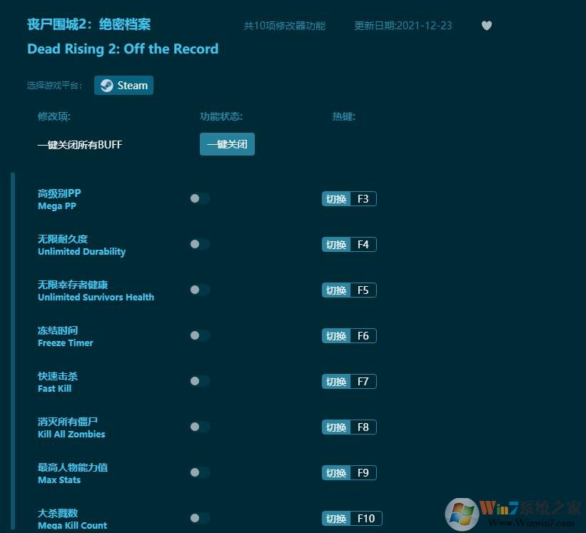喪尸圍城2絕密檔案十項修改器是一款真正可用的專門針對同名游戲《喪尸圍城2:絕密檔案》打造的游戲修改輔助工具,在這款游戲當中玩家需要扮演新聞記者Frank,在一個到處都是喪尸的城市中用生命為賭注換取對自己來說重要的新聞線索。本作最大的特色就是同屏?xí)霈F(xiàn)上千個喪尸,并且絕對不會有任何畫面拖慢,這些喪尸的細節(jié)刻畫也是非常的栩栩如生。為了能夠幫助廣大游戲玩家增強真實感,在這款游戲當中有一些時候會采用Frank手中持有的照相機的鏡頭呈現(xiàn),畫面采用昏黃的舊照片感覺,以此來大大加深了血腥恐怖的感覺。由于喪尸數(shù)量極其龐大,玩家朋友需要善于利用周圍環(huán)境,環(huán)境中的所有物體幾乎都可以用來當作武器,是一款蠻有意思的游戲,而本次為大家推出的這款喪尸圍城2絕密檔案十項修改器,則是能夠幫助玩家更好的進行游戲,讓玩家可以輕松通關(guān)游戲。喜歡的玩家們可以來winwin7下載使用一下~