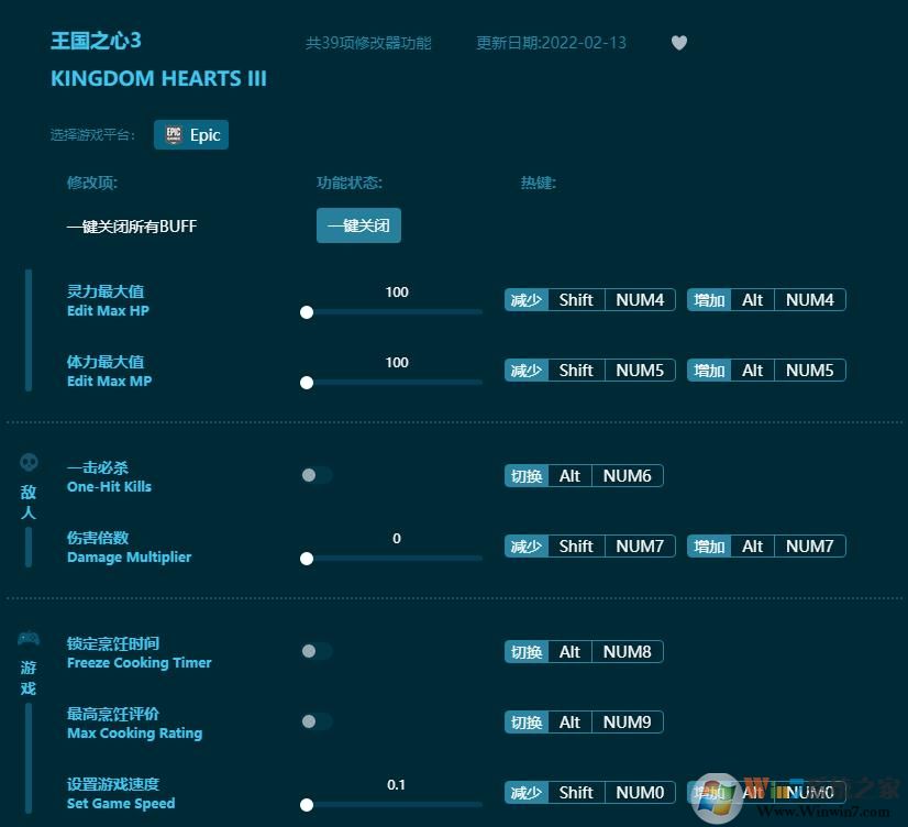 3、運行“王國之心3”游戲4、游戲運行后點擊“加個Buff"按鈕,當(dāng)然大家也可以進行單項修改