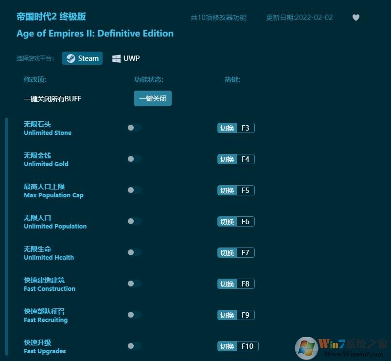 帝國(guó)時(shí)代2終極版修改器功能說(shuō)明