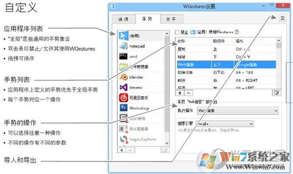 作為一個(gè)全局鼠標(biāo)手勢(shì),WGestures可以作用于幾乎任何應(yīng)用程序。除了預(yù)定義的手勢(shì)外,您還可以為任意應(yīng)用程序添加任意手勢(shì)。