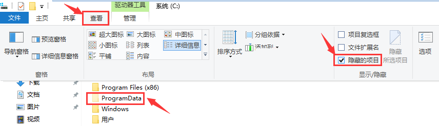 注意,ProgramData目錄默認(rèn)是隱藏的,我們通過以下方法讓其顯示出來,