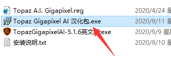 1、雙擊【Topaz Gigapixel AI 漢化包.exe】,如下圖所示: