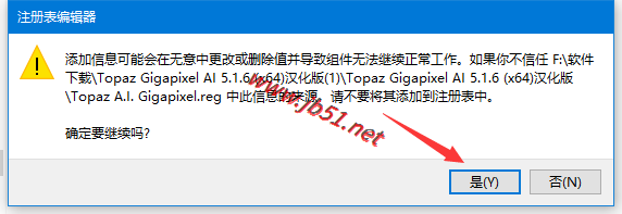1、雙擊運(yùn)行【Topaz A.I. Gigapixel.reg】,如下圖所示: