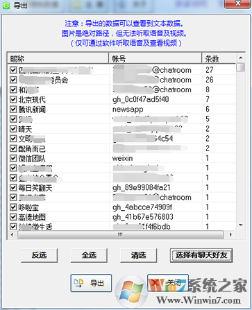 4、可以將微信聊天記錄導(dǎo)出為html文件,這樣下次查看時(shí),您不打開本軟件也可以進(jìn)行查看了。在軟件上點(diǎn)“導(dǎo)出聊天數(shù)據(jù)”。界面如下所示: