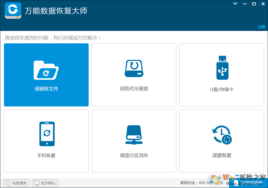 運行萬能數(shù)據(jù)恢復(fù)大師,選擇“誤刪除文件”
