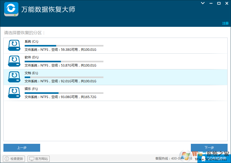 使用萬能數(shù)據(jù)恢復(fù)大師可以輕松恢復(fù)因為各種原因丟失的寶貴文件,支持誤刪恢復(fù)、格式化恢復(fù)、U盤手機內(nèi)存卡恢復(fù)、回收站清空恢復(fù)、萬能恢復(fù)等,所以