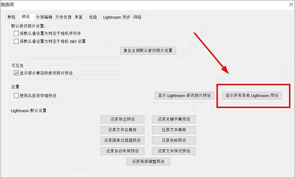2、在預設——顯示所有其他Lightroom預設