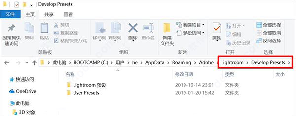 3、然后可以查看到Lightroom——Develop Presets,這個文件夾是默認的預設文件夾