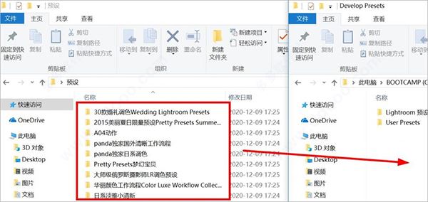5、以“30款婚禮調色”這個預設文件夾為例,放置到Develop Presets文件夾里