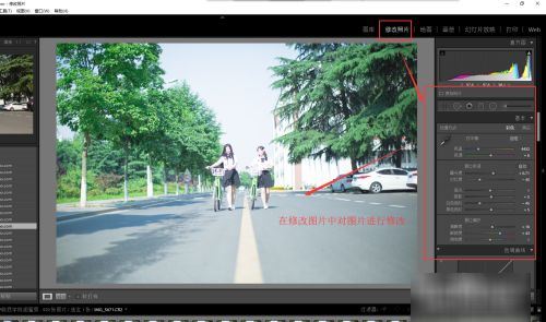 3、下面可以先選擇一個圖片,切換到“修改照片”界面,在修改照片中對當前這張圖片進行修圖處理。