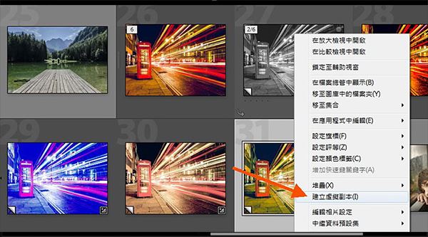 有些時候,即使是同一張相片,我們都會想試試不一樣的ps修圖方法,來較為哪個最好,創(chuàng)建虛似團本的益處,便是你不用自主拷貝好多個檔案資料,又或存儲差異的設置,在沒有附加提升歸檔室內空間的前提下,就可以幾個團本使你改動。用右鍵(如下圖)就可以創(chuàng)建虛似團本(virtualcopy),又或用 ctrl / command + ‘