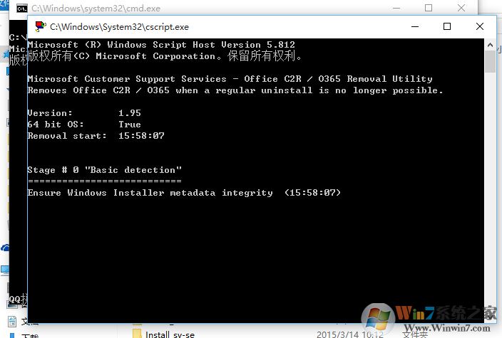 四、運(yùn)行后會出現(xiàn)兩個dos黑界面,等待完成后,會自動消失,接著你就可以重新安裝Microsoft office 2016了。