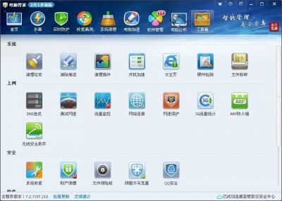 電腦管家還提供了諸如“清理插件”“硬件檢測”“網(wǎng)絡連接”“無線安全助手”“文件保險柜”等諸多實用小工具!