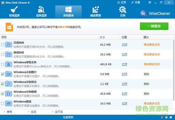 Wise Disk Cleaner是一款專業(yè)的磁盤清理工具,提供常規(guī)清理、高級清理、系統(tǒng)瘦身等多種功能,快速清理磁盤中的垃圾,釋放空間,也有利于加快電腦的運行速度。