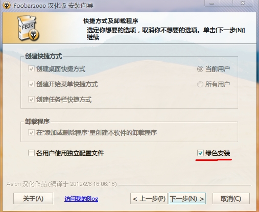 圖5.標(biāo)準(zhǔn)安裝和綠色安裝按自己需求來,綠色安裝是不寫進(jìn)注冊(cè)表的,當(dāng)有多個(gè)foobar在使用或者在嘗試一個(gè)新的配置時(shí)選綠色安裝。