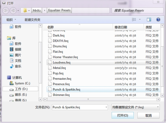 PS:預(yù)設(shè)文件一般在foobar程序文件夾的Equalizer Presets文件夾了,若無此文件夾,可以去下載。一般原因是你下的懶人包沒有這些配置文件或者你在安裝程序包時(shí)沒有選中”均衡器配置文件“,可以自己去嘗試調(diào)下均衡器,調(diào)一個(gè)自己聽得慣的保存起來。