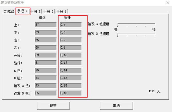 進(jìn)入到定義鍵盤及搖桿界面,如圖所示,我們可以對(duì)功能鍵、手把進(jìn)行設(shè)置,這里只需要按照自己的需要來(lái)設(shè)置就行了;