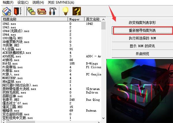 最后右側(cè)點(diǎn)擊“重新搜尋檔案列表”選項(xiàng),然后就能刷新界面左側(cè)的游戲列表了。