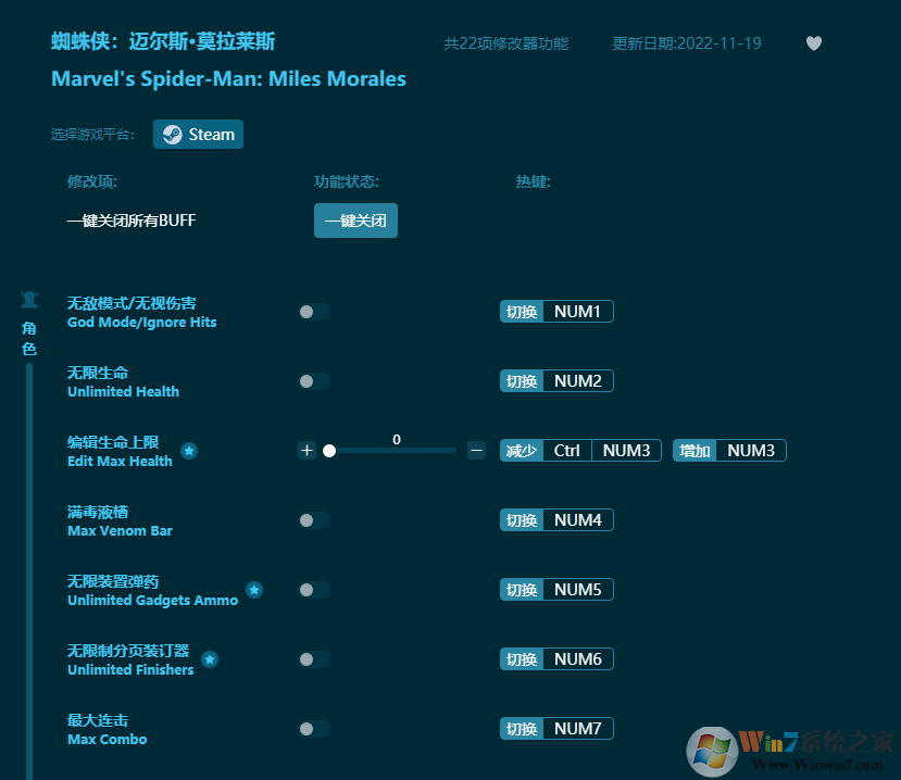 蜘蛛俠邁爾斯莫拉萊斯修改器功能: