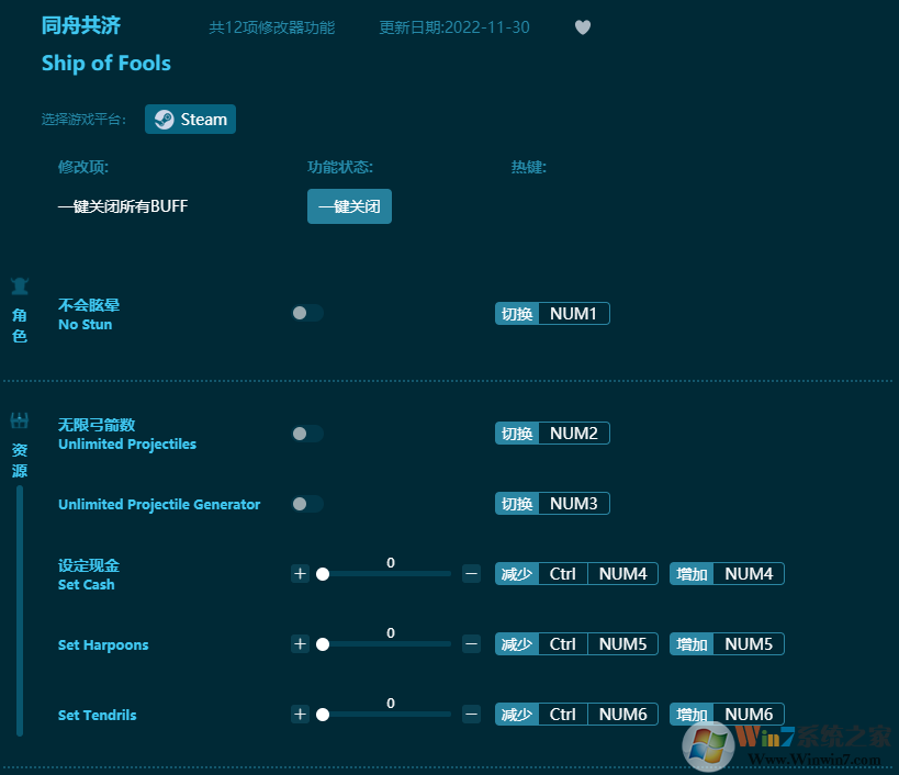 同舟共濟修改器功能:
