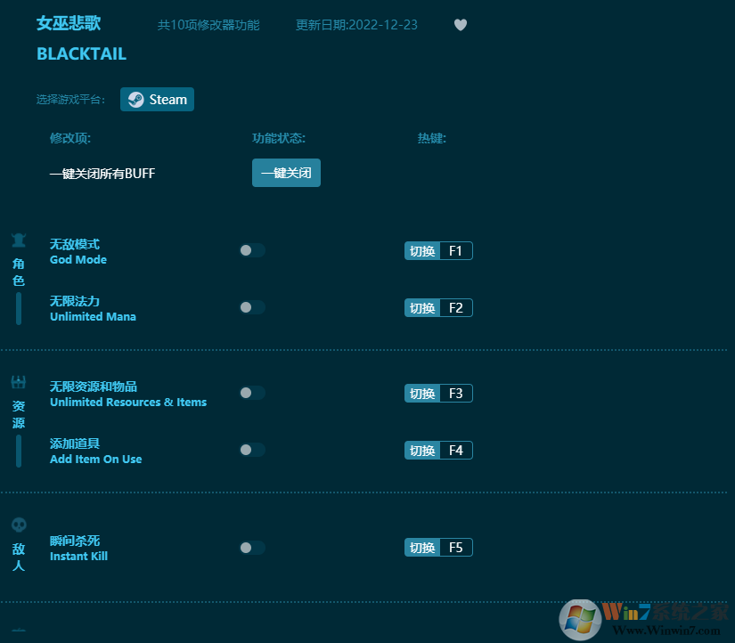 女巫悲歌修改器功能: