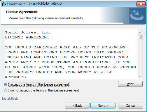 2、雙擊文件“Overture5.exe”先安裝原程序,如WinWin7小編分享的圖片:
