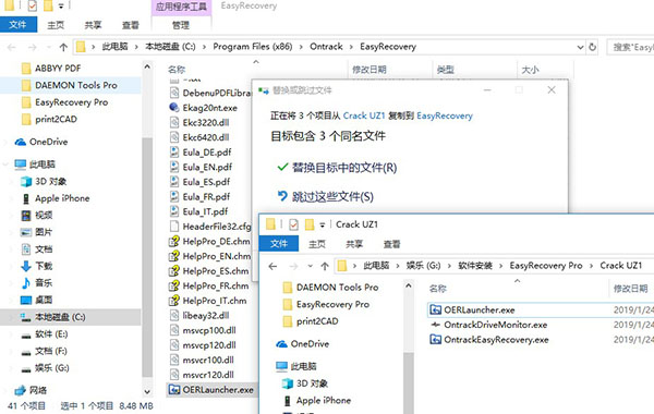 8、安裝完成后將破解補丁復(fù)制到安裝目錄下替換原文件即可,默認安裝目錄下午“C:\Program Files (x86)\Ontrack\EasyRecovery”