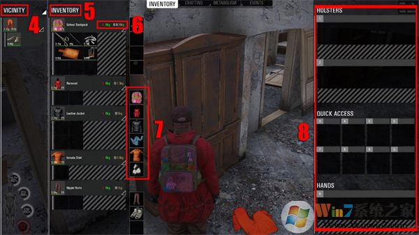 1、這是您的囚犯的狀態(tài)欄,您可以在其中看到他的健康,耐力,能量和水合作用2、這是快速訪問欄,您可以通過該欄訪問您在庫存中綁定的項目。