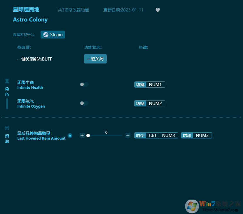 《Astro Colony》又被稱為星際殖民地,作為一款包含了模擬經(jīng)營、沙盒建造、探索、太空模擬類元素,對于喜歡《幸福工廠》和《戴森球計劃》的小伙伴們來說,《Astro Colony》目前整體游戲完成度和優(yōu)化存在不足,但這也不影響小伙伴的游玩。小伙伴們可以在游戲中盡情的探索無盡的宇宙,可以在不同的星球上建造不同的建筑,探索未知星球上的各種動植物,但也要小心其他危險生物!小伙伴也可以在星球上招聘宇航員來到你的星球上,促進殖民地的發(fā)展!非常有意思的一款游戲,感興趣的小伙伴可以從steam入手哦!本次為小伙伴們帶來是星際殖民地修改器(Astro Colony修改器),其中功能包括了:無限生命、無限氧氣、最后懸停物品數(shù)量功能,感興趣的小伙伴快來下載吧!
