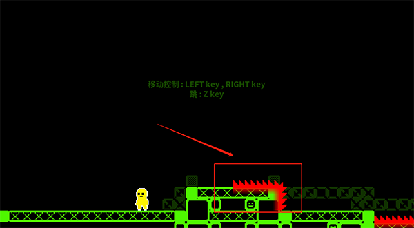 游戲內(nèi)我們通過方向鍵移動,Z鍵跳躍,游戲內(nèi)角色不會死亡,觸碰紅色鋸齒會被反彈擊退