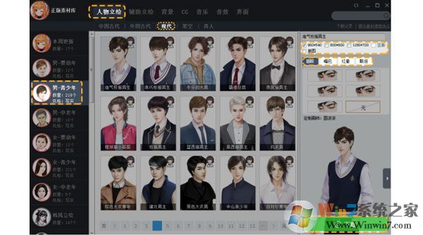 在素材區(qū),點(diǎn)擊立繪按鈕,將人物立繪拖拽到效果畫面中。
