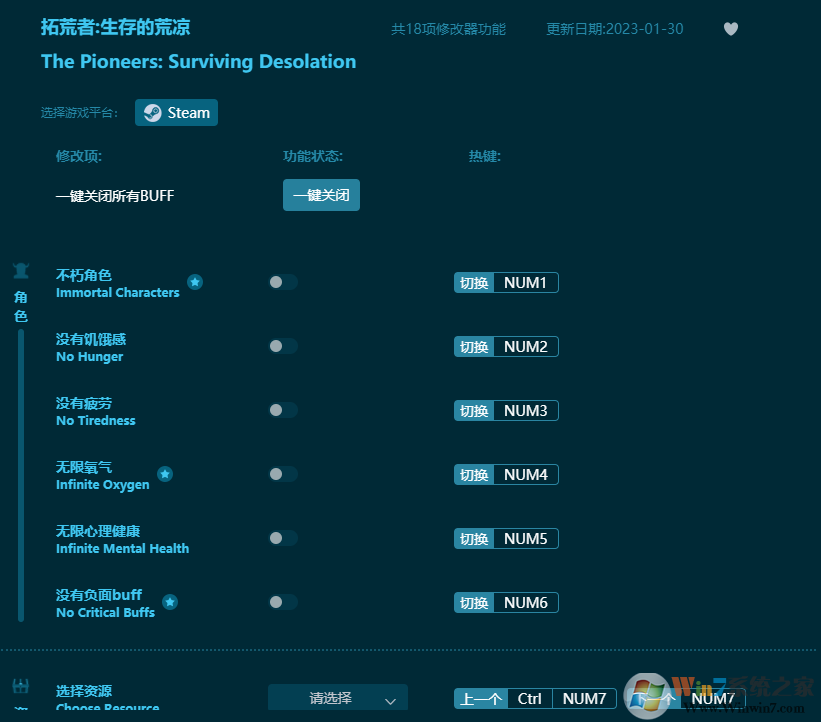 拓荒者生存的荒涼修改器功能介紹:
