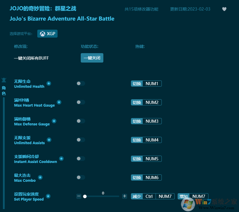 jojo的奇妙冒險(xiǎn)群星之戰(zhàn)修改器功能介紹:
