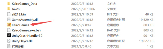 1、將本站下載的壓縮包全部解壓,雙擊“KairoGames.exe”進(jìn)入游戲;