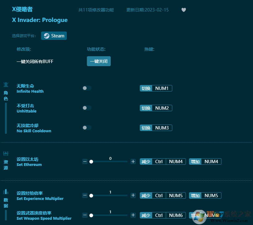 X侵略者修改器功能介紹: