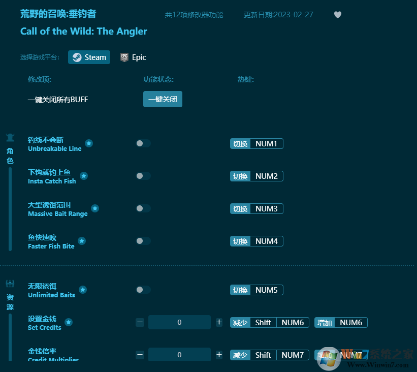 荒野的召喚垂釣者修改器使用方法: