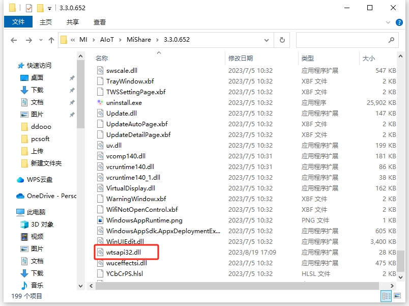 2、OTA升級:把文件wtsapi32.dll復(fù)制粘貼到C:\Program Files\MI\AIoT\MiShare\3.3.0.652目錄下