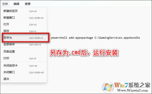 2、如果直接雙擊無(wú)法安裝,試試新建txt文本,輸入【powershell add-appxpackage C:\GamingServices.appxbundle】,保存,并將后綴改為cmd,啟動(dòng)這個(gè)cmd程序安裝