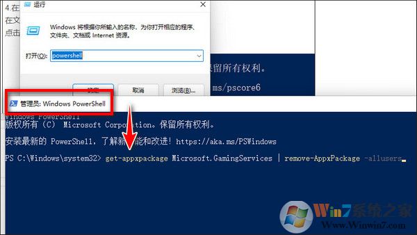 3、復(fù)制【get-appxpackage Microsoft.GamingServices | remove-AppxPackage -allusers】到里面,回車