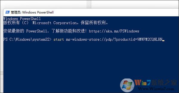4、復(fù)制【start ms-windows-store://pdp/?productid=9MWPM2CQNLHN】回車