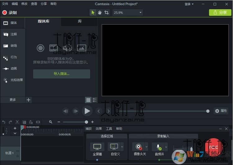 camtasia studio界面設(shè)計簡潔、易于操作和掌握,用戶可以方便地進行屏幕操作的錄制和配音、視頻的剪輯和過場動畫、添加說明字幕和水印、視頻壓縮和播放。