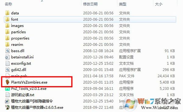 1、在本站下載解壓,得到如下文件,雙擊運行"PlantsVsZombies.exe"程序