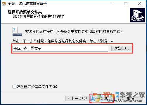 2、對開始菜單文件夾進行命名后點擊下一步