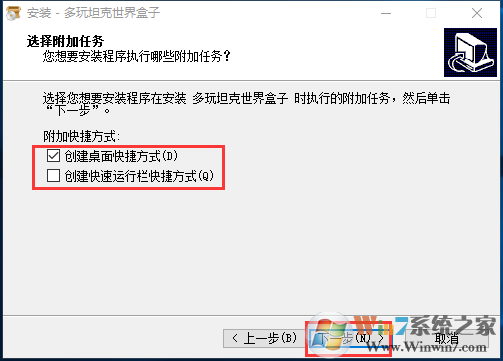 3、選擇是否要對附加任務(wù)進行選擇后點擊下一步