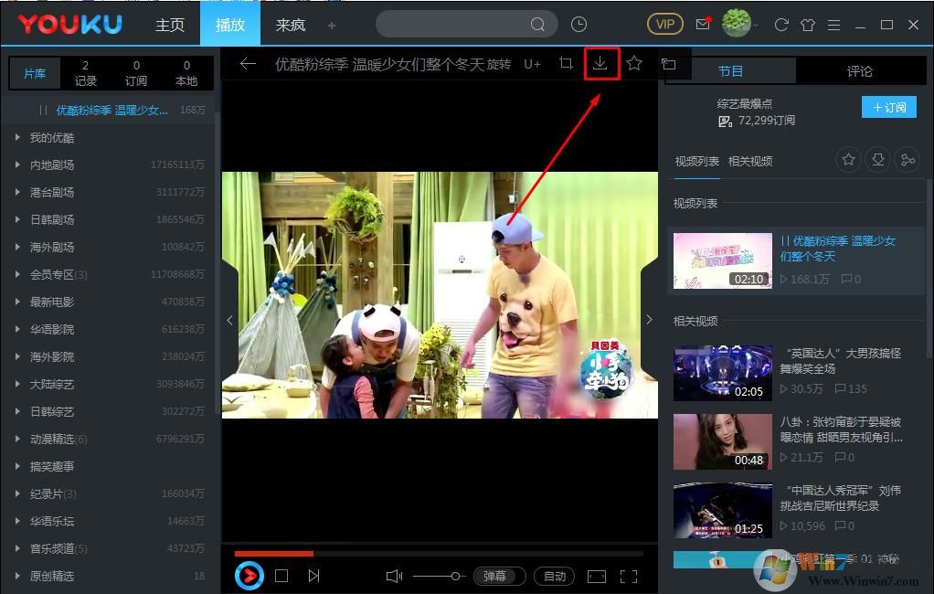 1、打開優(yōu)酷客戶端,播放你想下載的視頻,然后點(diǎn)擊右上角的“下載”,如下圖;