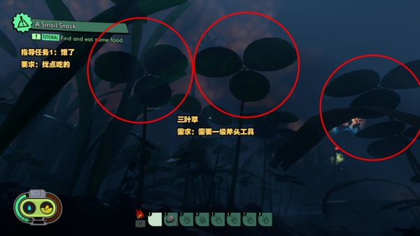 尋找并拾取三葉草三個(gè),三葉草需要斧頭來(lái)收割