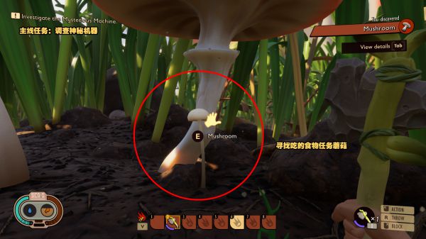 尋找地圖上的蘑菇,可以增加饑餓值